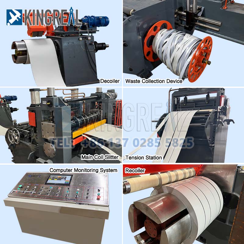 КИНГРЕАЛ СТЕЕЛ СЛИТЕР 850ММ Машина за резање челичних намотаја је специјално дизајнирана за металне намотаје ширине 850 мм, ефикасно и прецизно производећи уске траке са високом прецизношћу. КИНГРЕАЛ СТЕЕЛ СЛИТТЕР је посвећен да купцима пружи комплетна решења за производњу машина за резање челичних котура.