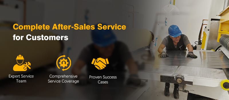 „Пружити купцима комплетну услугу након продаје“КИНГРЕАЛ СТЕЕЛ СЛИТТЕР има добро успостављен тим за постпродајне услуге који је у стању да пружи комплетну постпродајну услугу према потребама купаца. Ово укључује упутства за инсталацију на мрежи, инструкције за фабрику купаца, упутства за руковање машинама и упутства за одржавање, итд. 2023. године, КИНГРЕАЛ СТЕЕЛ СЛИТТЕР постпродајна услуга у фабрици купаца машина за резање металних котура у Саудијској Арабији била је веома препозната од стране купаца.