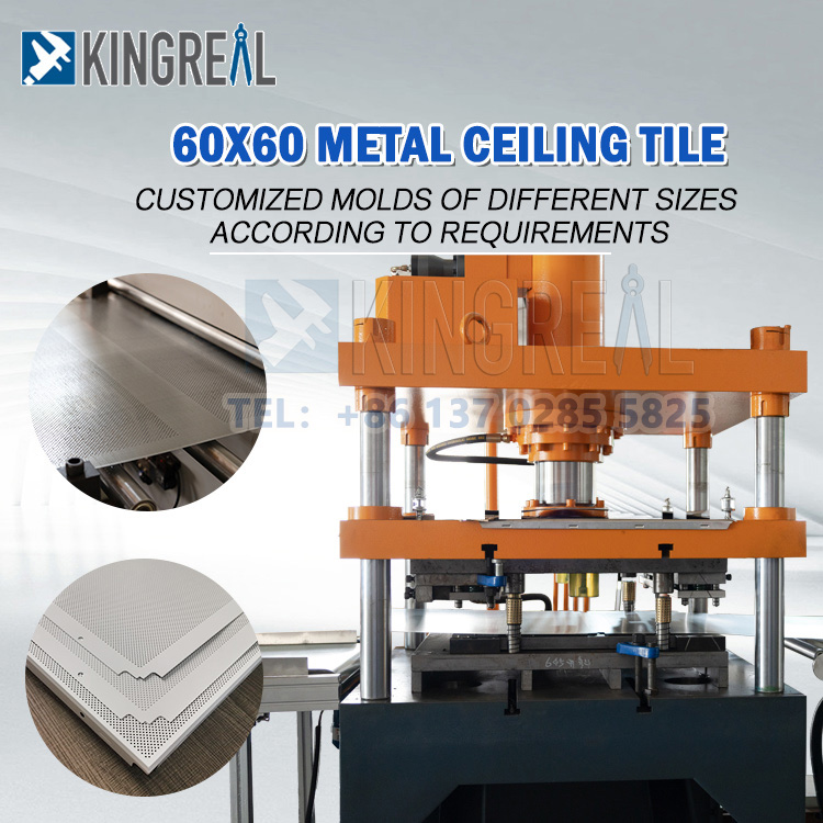 КИНГРЕАЛ СТЕЕЛ СЛИТТЕР линија перфорације металних плафонских плочица може произвести различите спецификације перфорираних плафона као што су 300к300мм, 600к600мм, 1200к600мм, итд., који се широко користе у пројектима декорације.